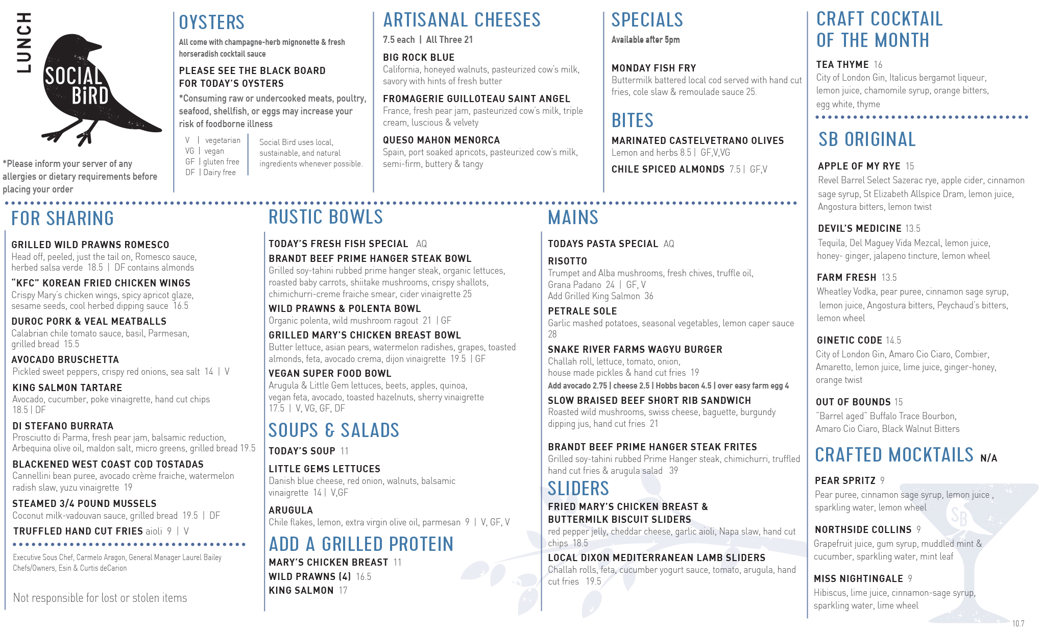 SAMPLE MENU. ITEMS SUBJECT TO CHANGE